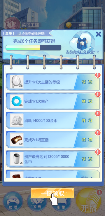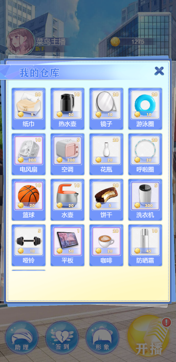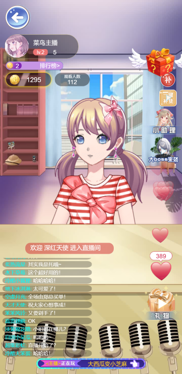 此游戏为休闲养成类游戏,游戏中你可以进货各种商品,并通过直播来销售他们,赚取的金币可以为主播购买漂亮的衣服装扮,还可以装扮自己的家,完成不同阶段的任务还有大量的金币奖励,一定要记得及时补货哦,断货直播是没有收入的。