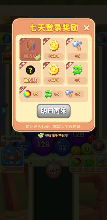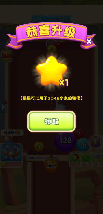 此游戏为休闲类游戏,这是基本的2048玩法,通过随机掉落的球进行合成,每一关都有一个目标,当完成目标可前往下一关。如果出现消除困难,则可以使用道具能更快的消除!还有其他玩法,比如家园和无限模式,通过领取任务目标奖励获取更多道具。