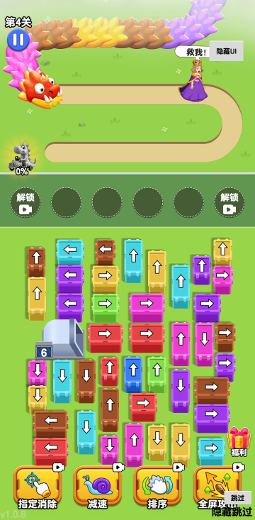 此游戏为休闲消除类游戏,游戏中一条龙追着女孩在跑,我们需要通过不同颜色来架设炮台消灭这条龙拯救女孩,要注意箭头的方向是否能够移出,还可以通过升级女孩的属性,以及更换女孩皮肤等多项功能等你来体验。