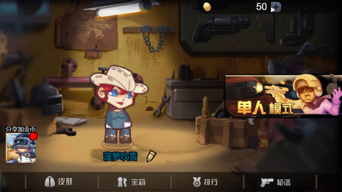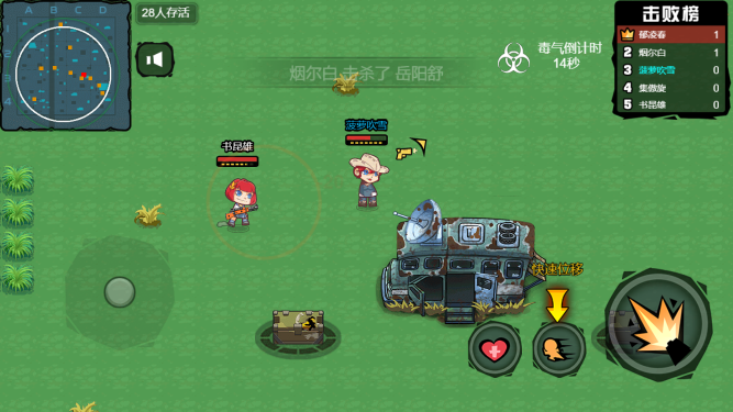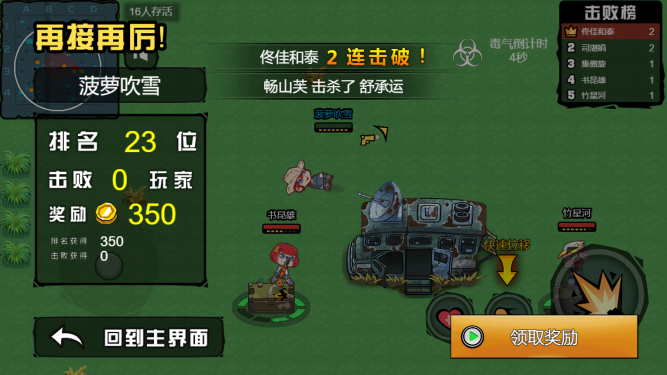 此游戏为休闲枪战类游戏,通过匹配队友进入战场,要尽快移动并获取枪支才有主动权,击败所有人即为最终的胜利。