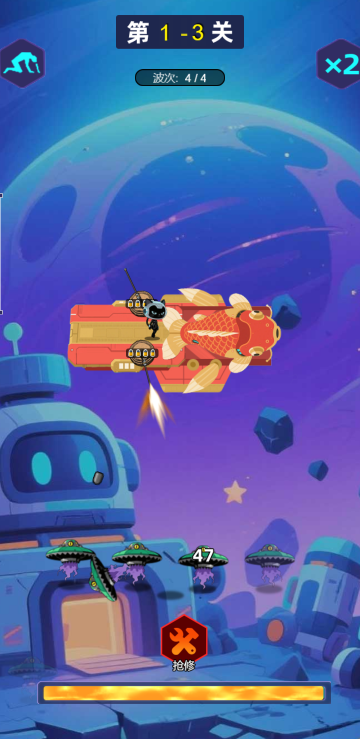 此游戏为太空射击类游戏,玩家通过驾驶飞船在银河系场景中进行实时对战,使用激光炮消灭对手并收集太空水晶升级装备。每击败一个敌人获得相应积分,通过搭配不同模块实现战斗策略调整,例如升级武器、护盾等。