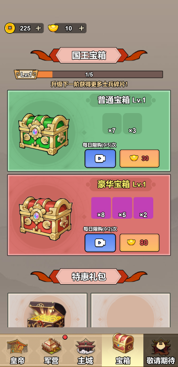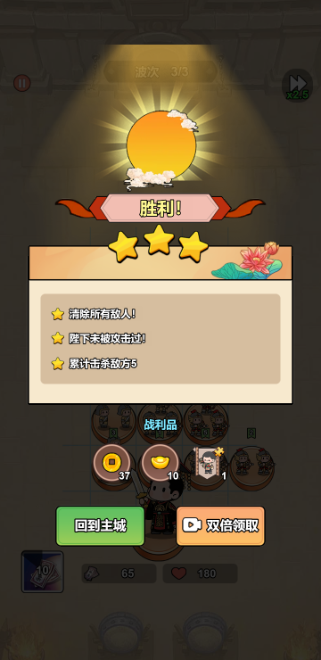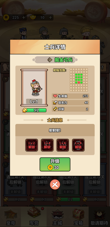 这是一个策略塔防游戏,你会拥有很多的战士,每个战士功能是不一样的,你需要合理搭配并升级他们,让他们能在战斗中发挥巨大作用。你还可以通过战斗外的各项任务和玩法来获取更多货币,用于开箱子升级你的战士,快来体验吧!