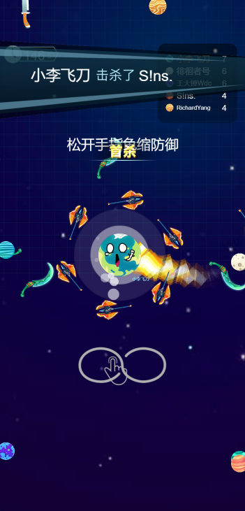 此游戏为竞技生存类游戏,以投掷飞刀为核心玩法,玩家通过控制飞刀投掷方向与力度进行战斗,结合科幻风格画面,适合休闲及竞技场景。