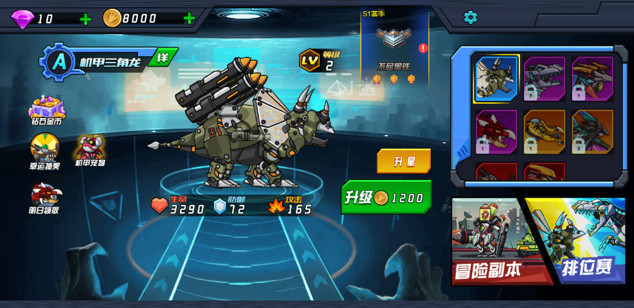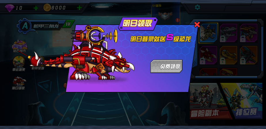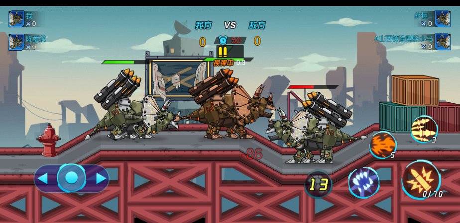 此游戏为动作射击类游戏,一款可以解锁全新战斗恐龙的竞技挑战游戏,你能够解锁各种恐龙来战斗,在游戏中玩家可以自己进行组装来升级恐龙,游戏的画面十分壮观,随时都可以战斗,快来控制你的恐龙消灭敌人吧。