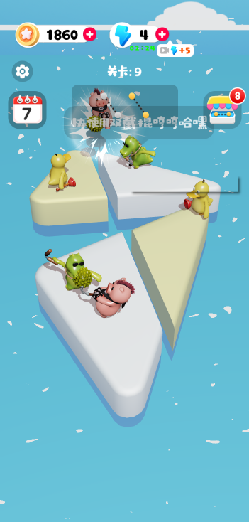 此游戏为休闲闯关类游戏,在关卡中你需要通过线条切割打架的萌宠,让小动物们各自分离,每个关卡都有不同的难度,根据关卡画面来正确的切割哦,非常考验大家的智力,快来挑战吧。