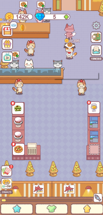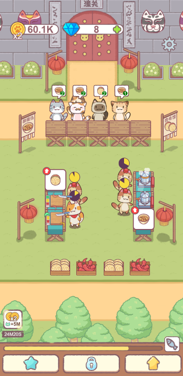 此游戏为模拟经营类游戏,玩家将扮演猫猫厨师或猫奴,通过烹饪美食或互动养成猫咪来体验温馨的喵星世界。从经营一家露天美食店开始,通过制作美食吸引顾客并逐步扩大店铺规模,支持自由装饰店铺环境、招募店员等操作。