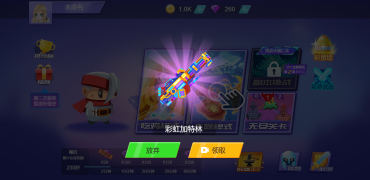 这是一款好玩的战斗类游戏,你可以通过观看视频免费获得最强大的武器然后进去虐菜,战斗感超爽,还可以通过锻造打造想要的武器,多款皮肤也可以选择,快来开启你的冒险之旅吧!