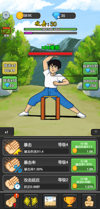 此游戏为休闲解压类游戏,玩家通过点击或滑动屏幕控制角色动作劈砍击碎不同硬度的砖块,不同材质的砖块需要调整力度和节奏,逐步升级挑战并享受解压体验。游戏初期关卡难度较低,后续会逐渐增加挑战性,例如提升砖块移动速度或加入特殊砖块类型等。