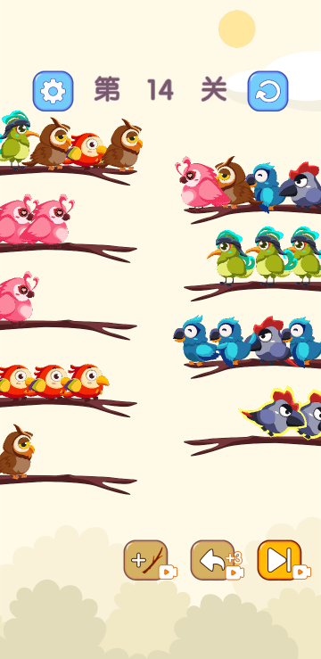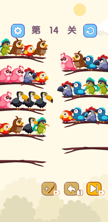 此游戏为休闲益智类游戏,主要通过移动或点击小鸟完成特定排序任务,横向、纵向或斜向排列至少4只同色小鸟进行消除,超多关卡,快来挑战吧!