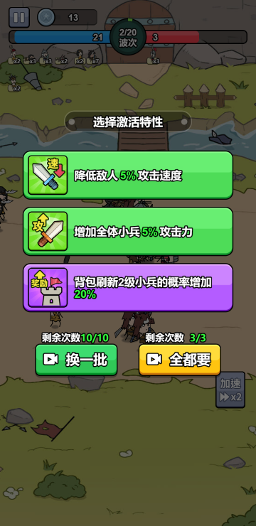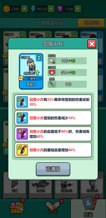 此游戏为合成塔防类游戏,游戏中你可以通过合成来升级战士的等级或者选择合适的词条,从而提升战斗力,消灭每一波进攻的敌人才算过关。战斗外也可以通过升级和进阶来提高他们的属性值,快来尝试一下吧,不一样的战斗体验。