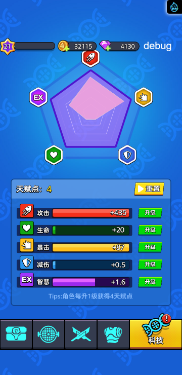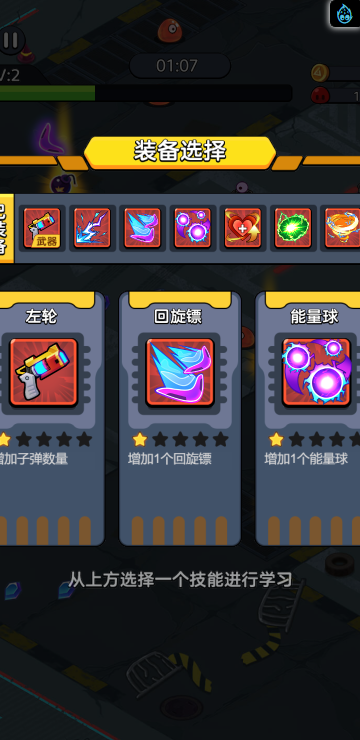 此游戏为割草闯关类游戏,游戏中你可以穿上并升级装备,可以极大提升自身的属性,还可以通过探索来获取天赋点用来提升属性,战斗中你也可以通过拾取道具来消灭怪物和吸收金币、增加血量等,最终消灭BOSS则算闯关成功!