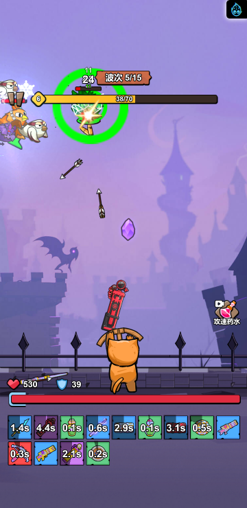此游戏为塔防战斗类游戏,游戏分为多种模式,主要游戏内容为闯关塔防模式,你可以通过装备、属性的选择来提升实力,战斗中还可以选择适合自己的词条增强属性,除此之外还有守卫和跑酷模式,内容简单有趣,快来试一下吧!