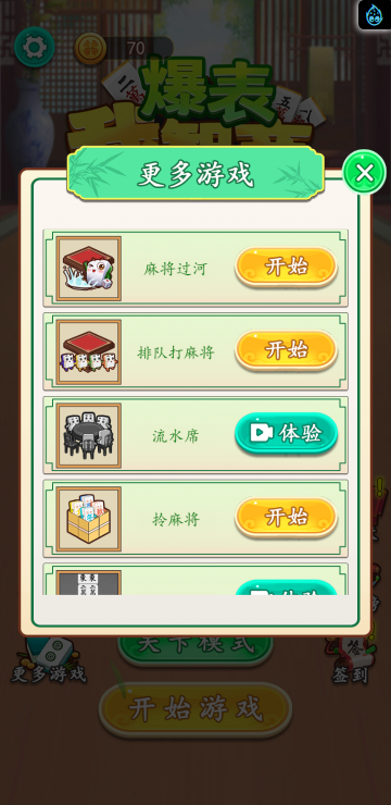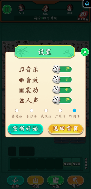 此游戏为休闲消除类游戏,游戏有多种模式,比如立体三消、拎麻将、排队打麻将、麻将过河、流水席等等,不同的游戏模式拥有的不同的游戏体验,还可以根据个人爱好设置不同地方的游戏音效,这完全是一个能够让你沉迷的麻将世界,快来感受一下吧!