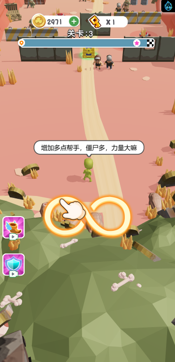 这是一款冒险战斗的游戏,游戏中你可以通过调整走向来控制僵尸,目标只有一个,那就是活下去并且感染尽可能多的人类抵达终点才算胜利,速度要快,还要注意尽可能躲避人类的攻击,快来体验吧!