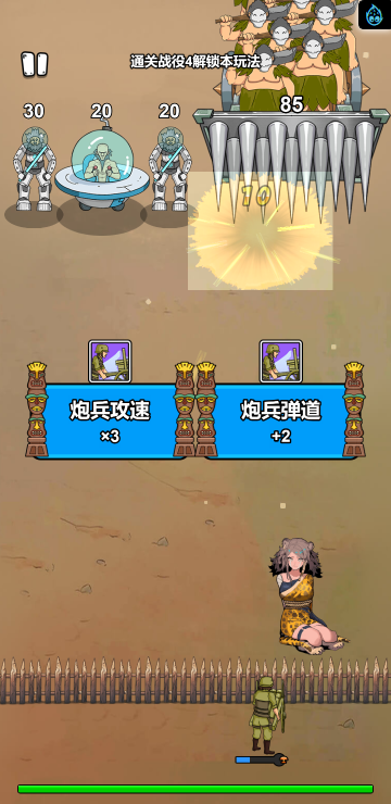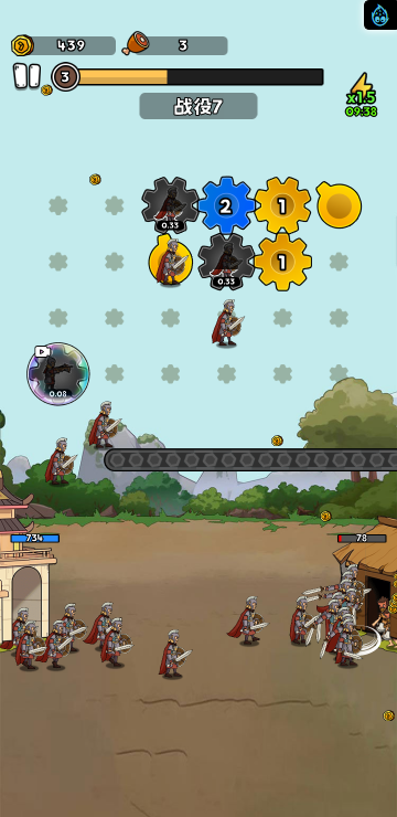 这是一款策略塔防的游戏,游戏中你需要通过消灭敌人来获取食物,用于购买和刷新道具,要合理布局,保证在最短时间内能够造出尽可能多的兵种,当然还有其他道具齿轮可以使用,同种数值打的齿轮可以叠加升级,每关需要消灭敌人的基地才算胜利,快来试试吧!