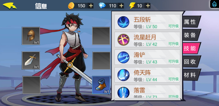 这是一款战斗冒险的游戏,游戏中拥有很多技能,不能技能有不同的效果,比如位移、攻击等作用,你需要用这些技能有效的躲避敌人的攻击并消灭他们,获取到的装备可以用来提升战斗力,金币可以用来提升技能等级,可以更加轻松的消灭敌人!