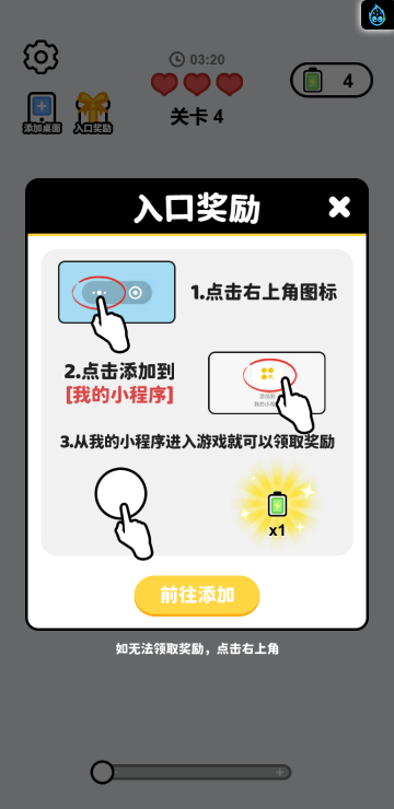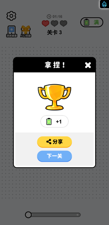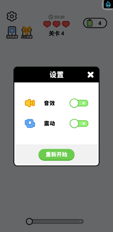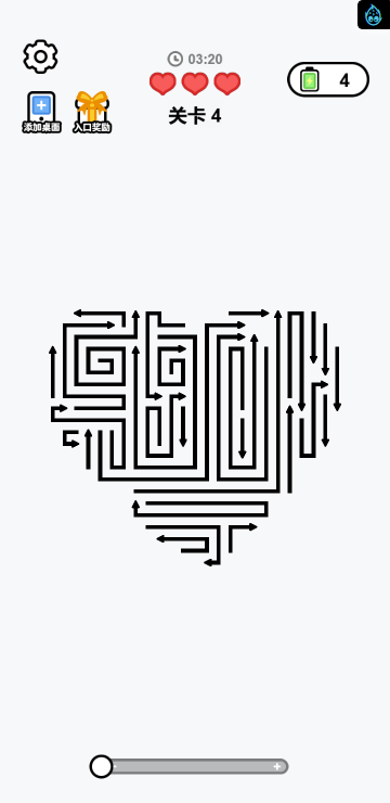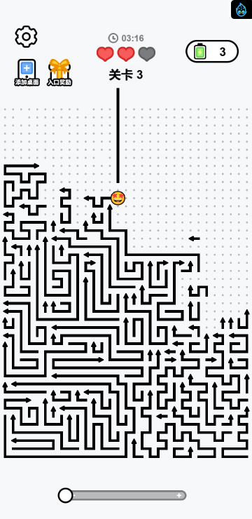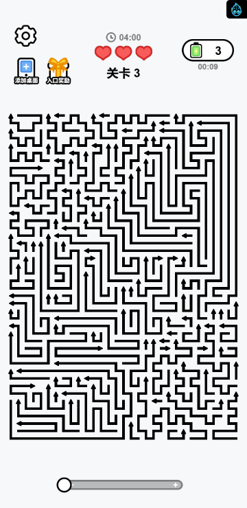这是一款休闲消除的游戏,游戏中你需要按照箭头的指向来消除它们,但是它们前进的路线上不能有其他箭头阻挡不然就会失去一次生命,三次生命都失去那么意味着游戏失败,需要重新开始,快来挑战一下吧!