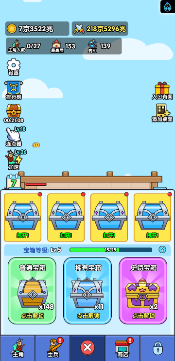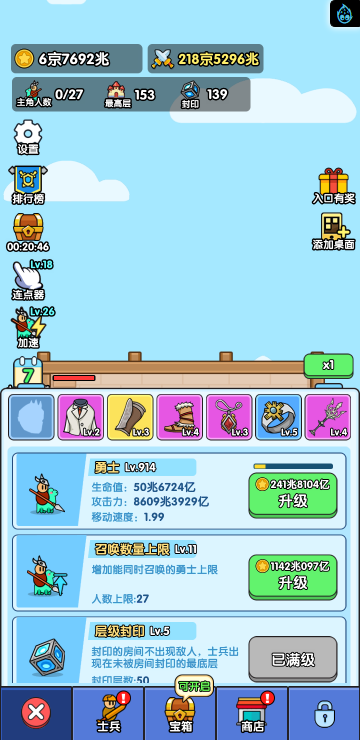 这是一款闯关冒险战斗的游戏,游戏中你可以通过不断升级解锁更多兵种来对抗敌人,还可以增强主角的属性值,遇到困难还可以召唤支援,你的队伍只会越来越强大,升级他们是提升实力最快的方式,能够达到新的高度,快来挑战吧!