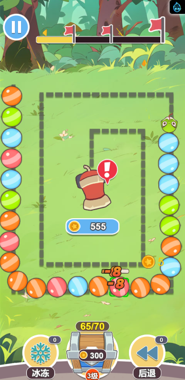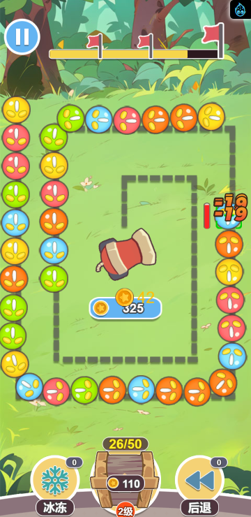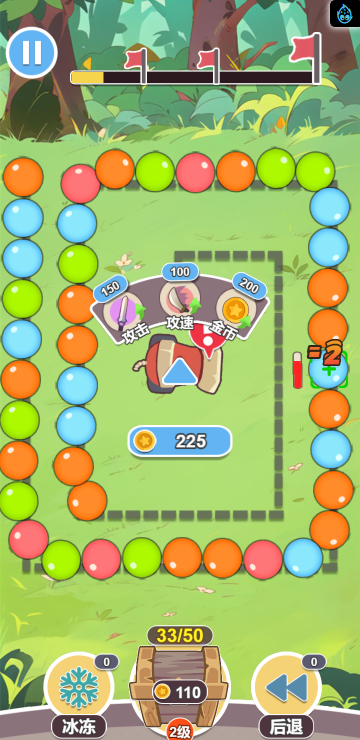这是一款休闲祖玛小游戏,游戏中仅有三关,每关结束都会有BOSS出现,消灭它才能进入下一关,你还需要通过不断消除来获取金币提升炮台的攻击和攻速,很少人能够全部通关,快来挑战一下吧!