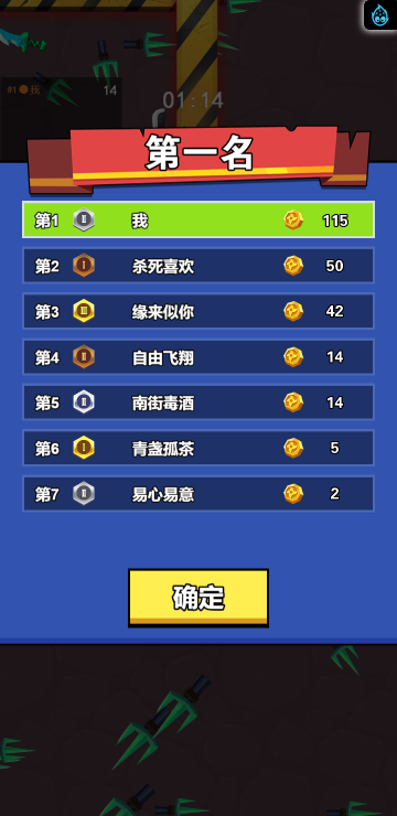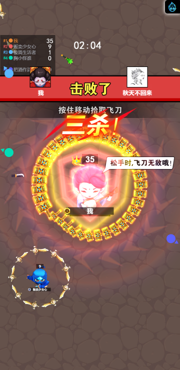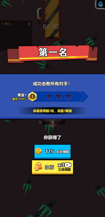 这是一款休闲益智类小游戏,游戏中你需要不断拾取刀剑来壮大自己的实力,还要注意躲避实力比自己强大的敌人,如果遇到比自己弱的敌人也一定不要放过,努力活到最后取得第一,游戏中还可以通过金币和钻石来解锁不同的角色和皮肤,快来挑战吧!