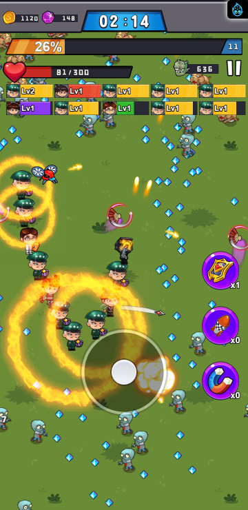 这是一款割草冒险类小游戏,游戏中与其他割草游戏不同的是,你不但可以选择属性来强化,也可以选择英雄来辅助战斗,面对一波波强大的敌人来袭,你完全可以组成一支强悍的军队来进行反击,这样存活下来的希望就更大,快来试试吧!