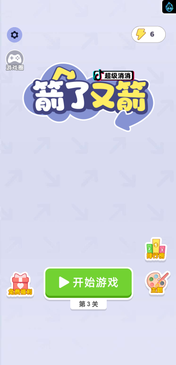 这是一款箭头消除游戏,根据箭头方向无障碍即可消除,还可以切换不同的皮肤。