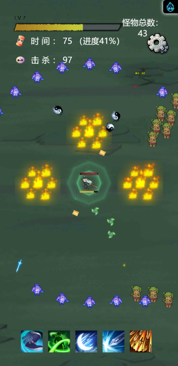 这是一款闯关割草类游戏,不断会有大批量怪物向你发起攻击,你需要选择合适的属性加成并提升战斗力来消灭他们。