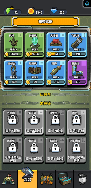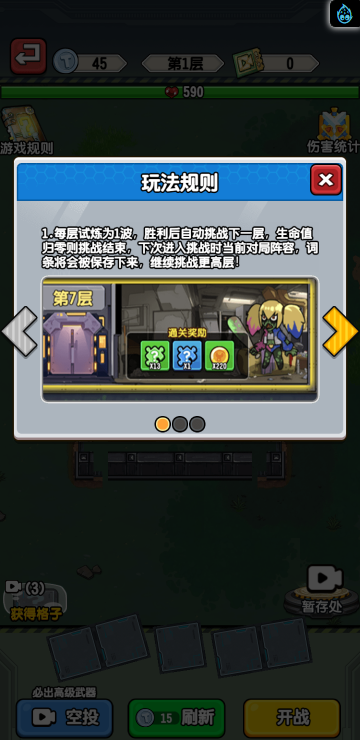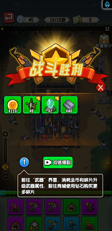 这是一款合成塔防游戏,通过不断升级武器装备,才能在后续的闯关塔防战斗中更容易取得最终的胜利。
