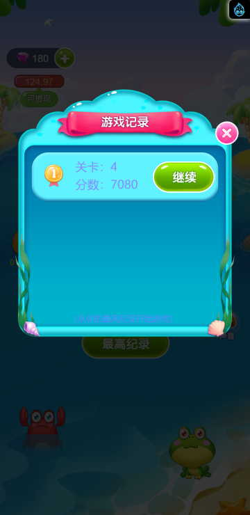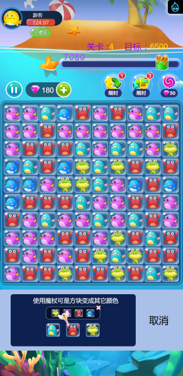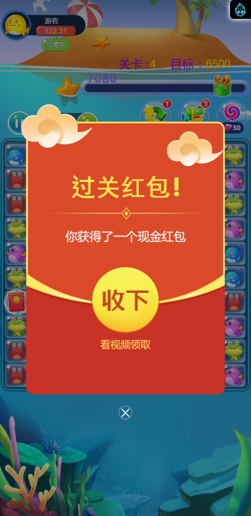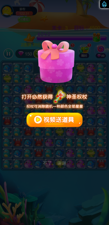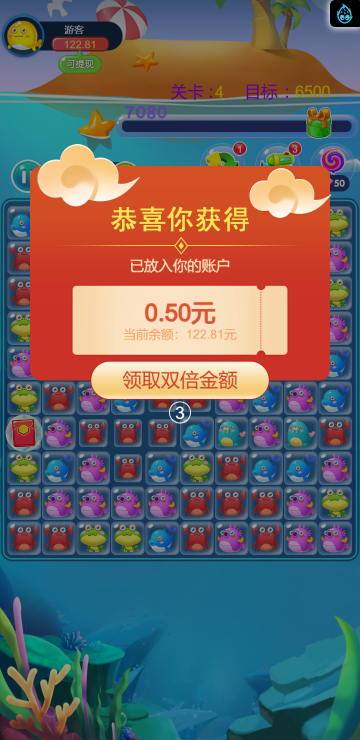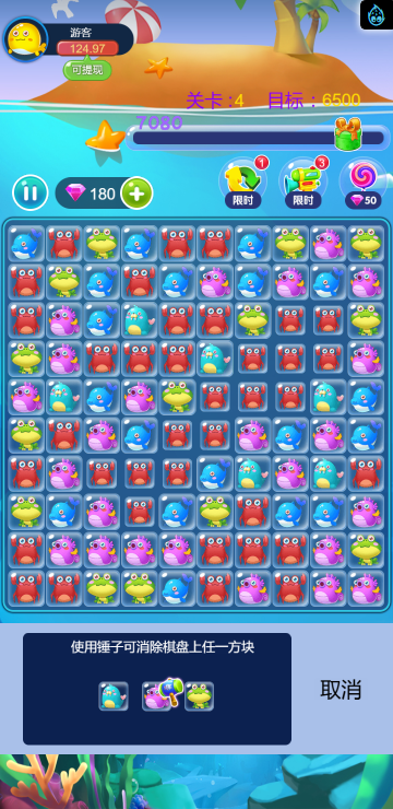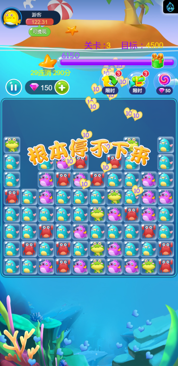 这是一款消除类的游戏,类似消灭星星,多种海洋动物陪你一起炫酷消除。