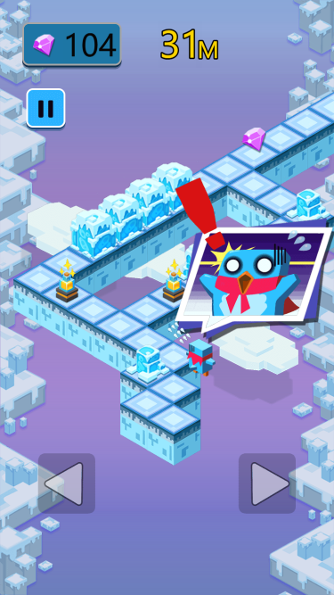 你需要点击屏幕左右两侧来操纵小企鹅顺利通过面前的道路到达终点才算胜利,要注意的是走过的路会在一定时间内销毁,速度要快哦。