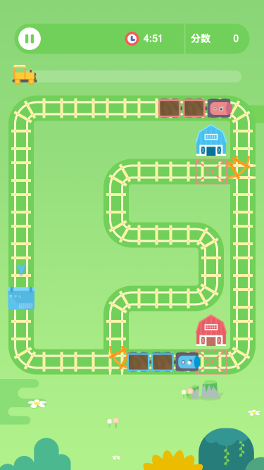 该游戏比较适合儿童娱乐,游戏内容很简单,点击红色轨道可以改变后面火车的行动轨道,不同颜色的货物要对应颜色的火车才可以装载,并且需要运送到对应的仓库。