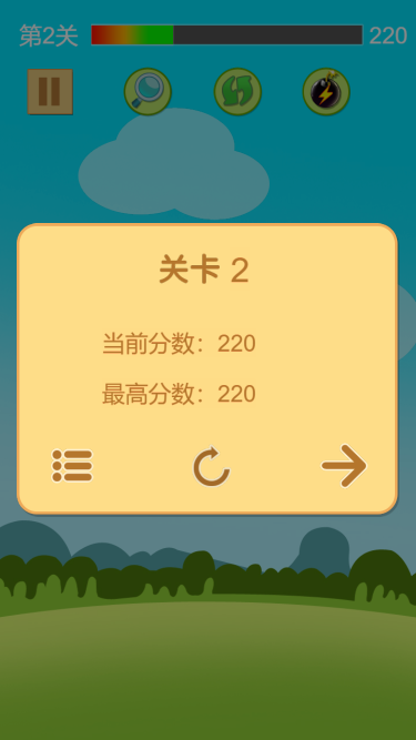 此游戏为休闲消除类游戏,同类水果没有阻隔的情况下即可消除,要完成当前关卡所有水果的消除才算胜利。