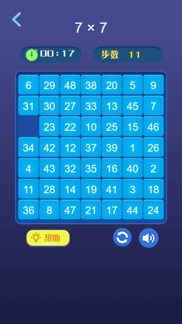此为单机、休闲类小游戏,该游戏内容比较简单,就是把数字按照从小到大的顺序排列好,难度从易到难,很有挑战性。