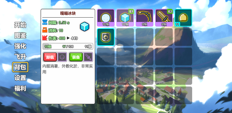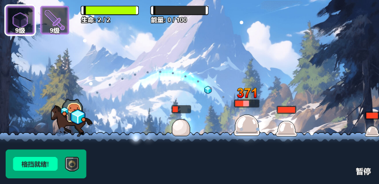 此游戏为休闲射击类游戏,大量史莱姆向你涌来想要攻击你,你需要在他们能攻击你之前消灭他们,如果不小心被攻击了,一定要使用盾牌来格挡伤害,不同的武器属性也不同,合理使用武器也是过关很重要的一部分,也请记得强化他们来加强威力哦。