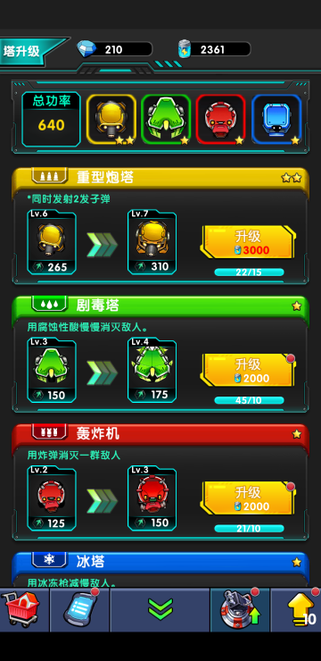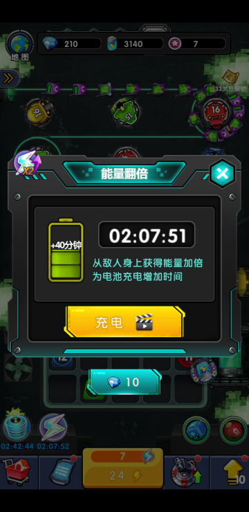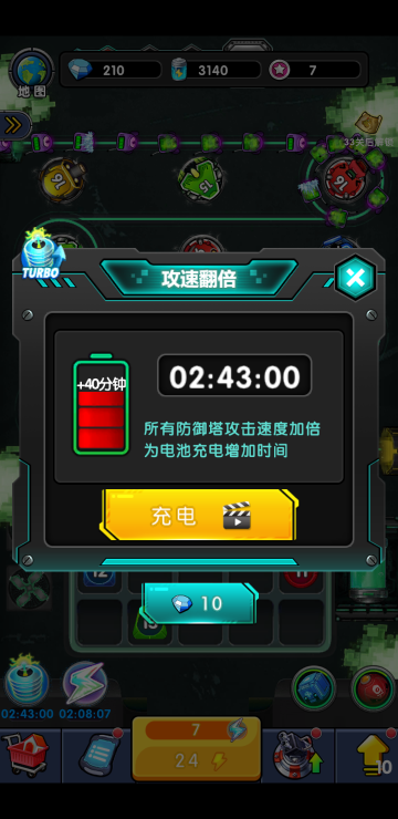 此游戏为休闲战斗类游戏,游戏中会不断有怪兽从固定位置涌出,你需要通过合成升级炮台来消灭他们,炮台等级越高威力越大,每一关都会有BOSS出现,难度随关卡递增。合理使用技能能让游戏更加轻松,比如自动合成、能量翻倍、攻速翻倍等,700多关等你来挑战!